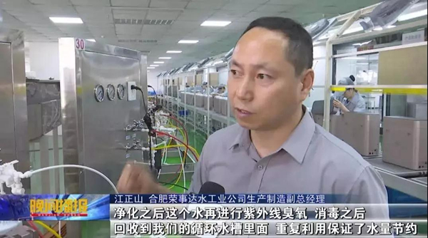 511日—517日為第二十八屆全國城市節約用水宣傳周,為引導廣大市民養成良好的節水習慣,同時推動節水技術在企事業單位發展中的普及,合肥新聞頻道開展“全國城市節約用水宣傳周”系列報道。516日晚2130分,合肥新聞頻道《晚間播報》節目播出新聞《循環利用“節水器”  助力綠色環保》,就校園直飲水節水建設和企業綠色生產做了專題報道,并走進本土知名企業合肥榮事達水工業公司,見證了領先的凈水及節水技術。